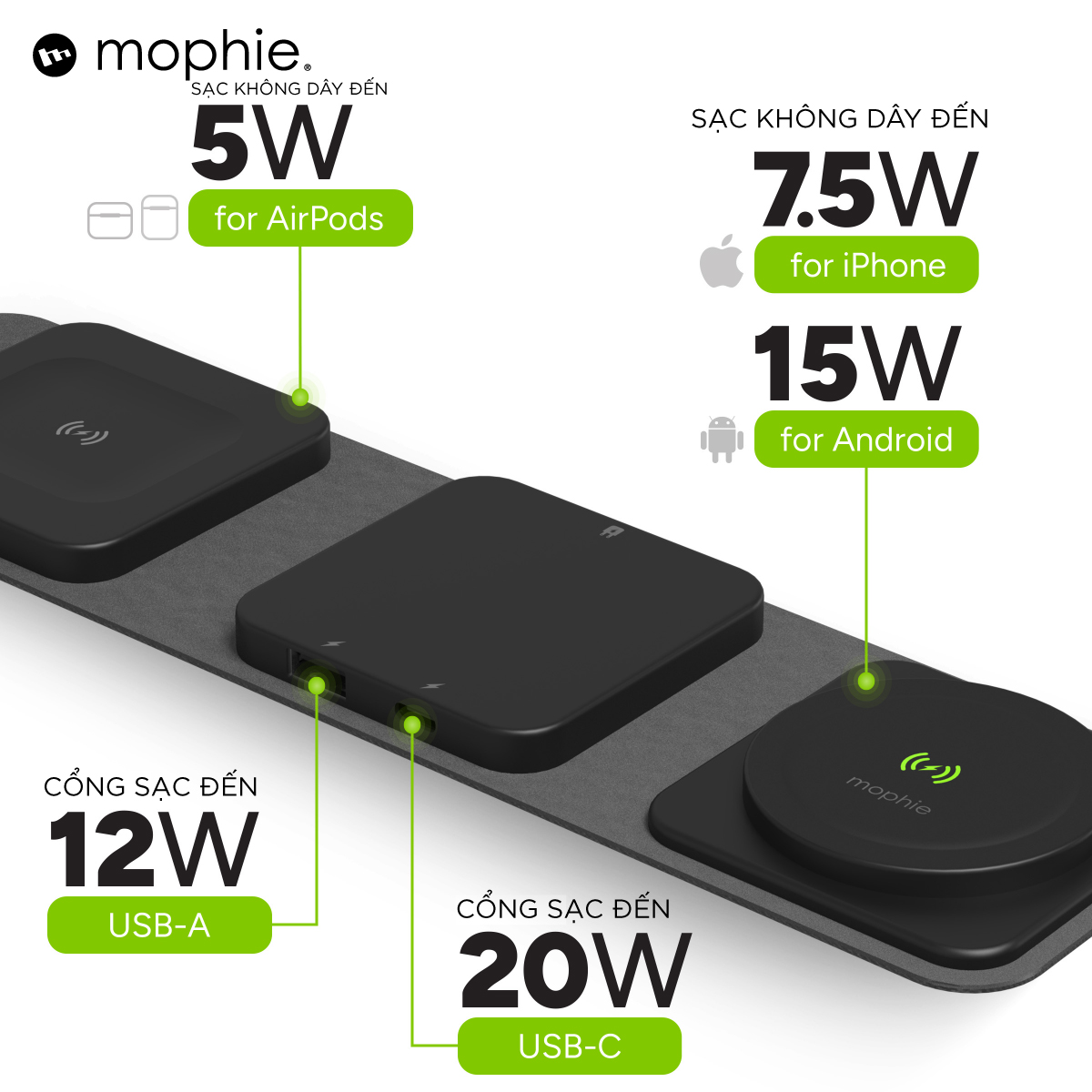 ĐẾ SẠC MOPHIE 4 IN 1 SẠC ĐA THIẾT BỊ - TRỌN TIỆN ÍCH Đế sạc Mophie 4 in 1 Mophie là một trong những thương hiệu phụ kiện chất lượng hàng đầu thế