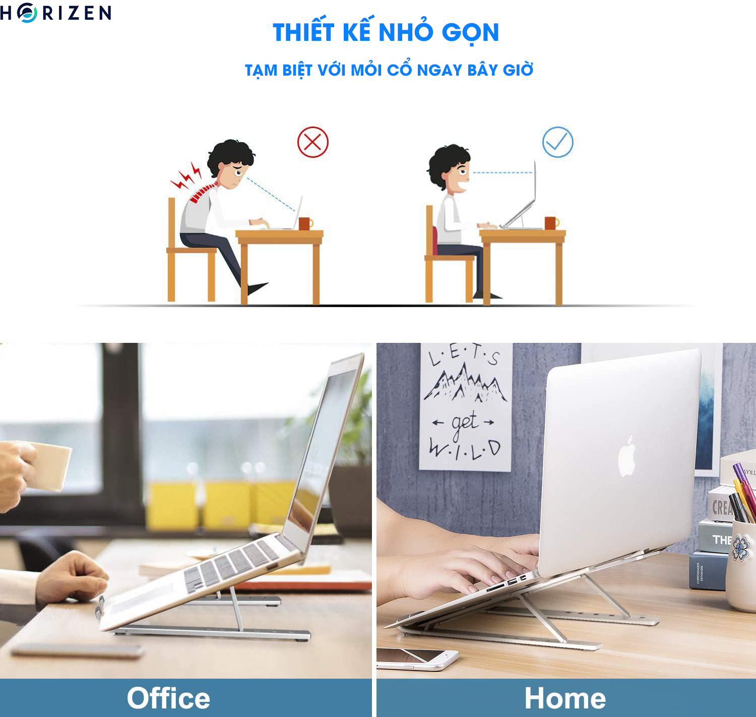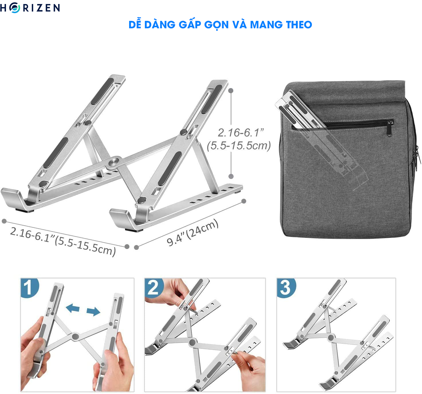 ✨Đế tản nhiệt cho Laptop, Macbook - Giá đỡ, kệ đỡ, phụ kiện cao cấp cho Macbook, Laptop bằng hợp kim nhôm thông minh gấp gọn Horizen N3 - Hàng chính hãng