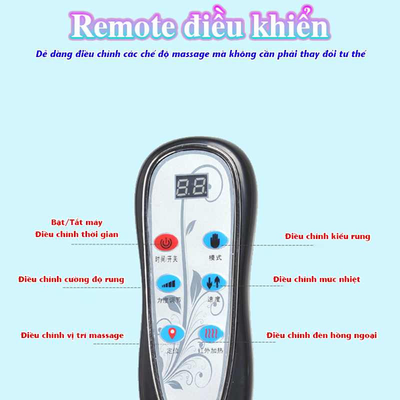 Sản phẩm đi kèm với một chiếc remote cầm tay, giúp bạn dễ dàng điều chỉnh các chế độ massage mà không cần phải thay đổi tư thế. Chỉ với vài thao tác đơn giản, bạn có thể trải nghiệm các chức năng massage khác nhau.