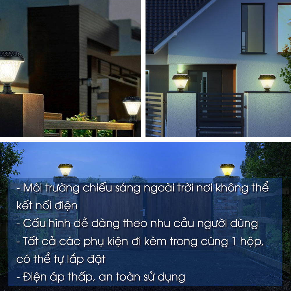 BẢO HÀNH 1 NĂM Mô tả sản phẩm : Phù hợp với sân vườn, công viên, nhà dân và các dự án Tự động sạc vào ban ngày và sáng vào ban