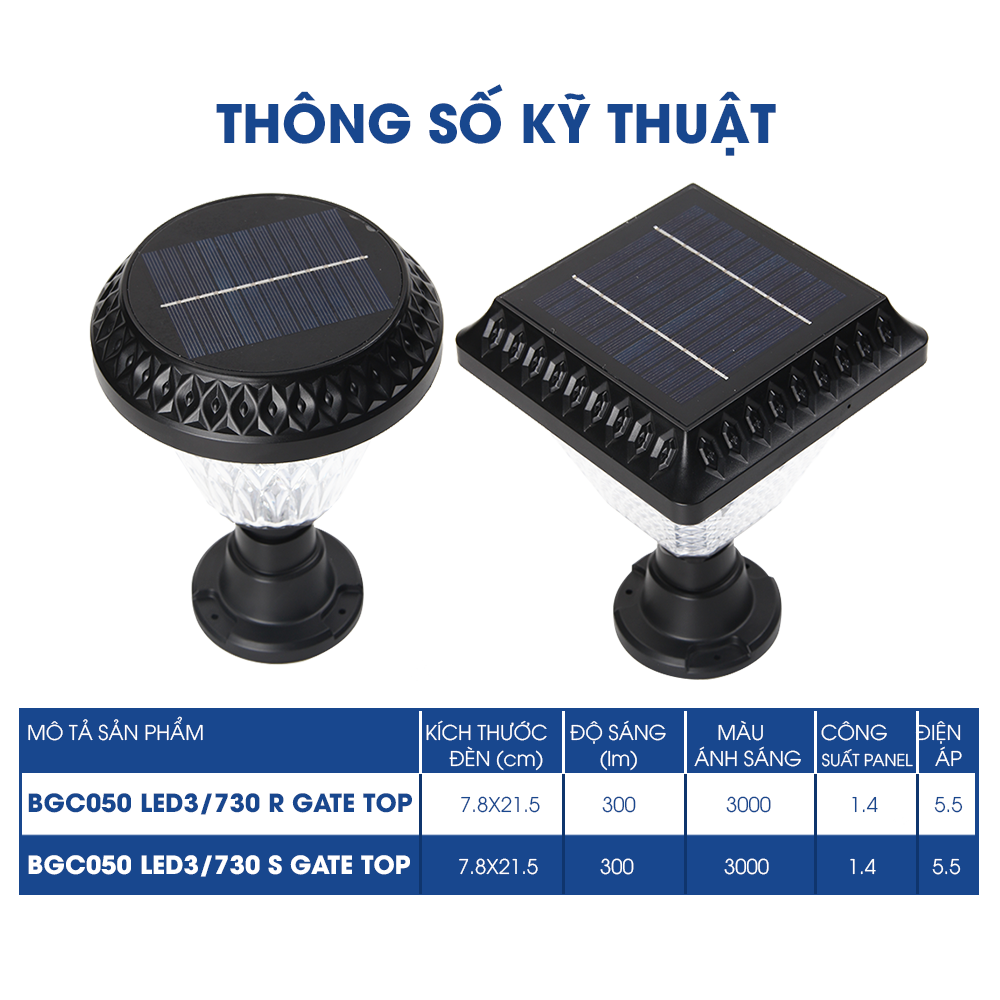 • Bảng điều khiển năng lượng mặt trời: vuông: 1.8W; tròn: 1.1W