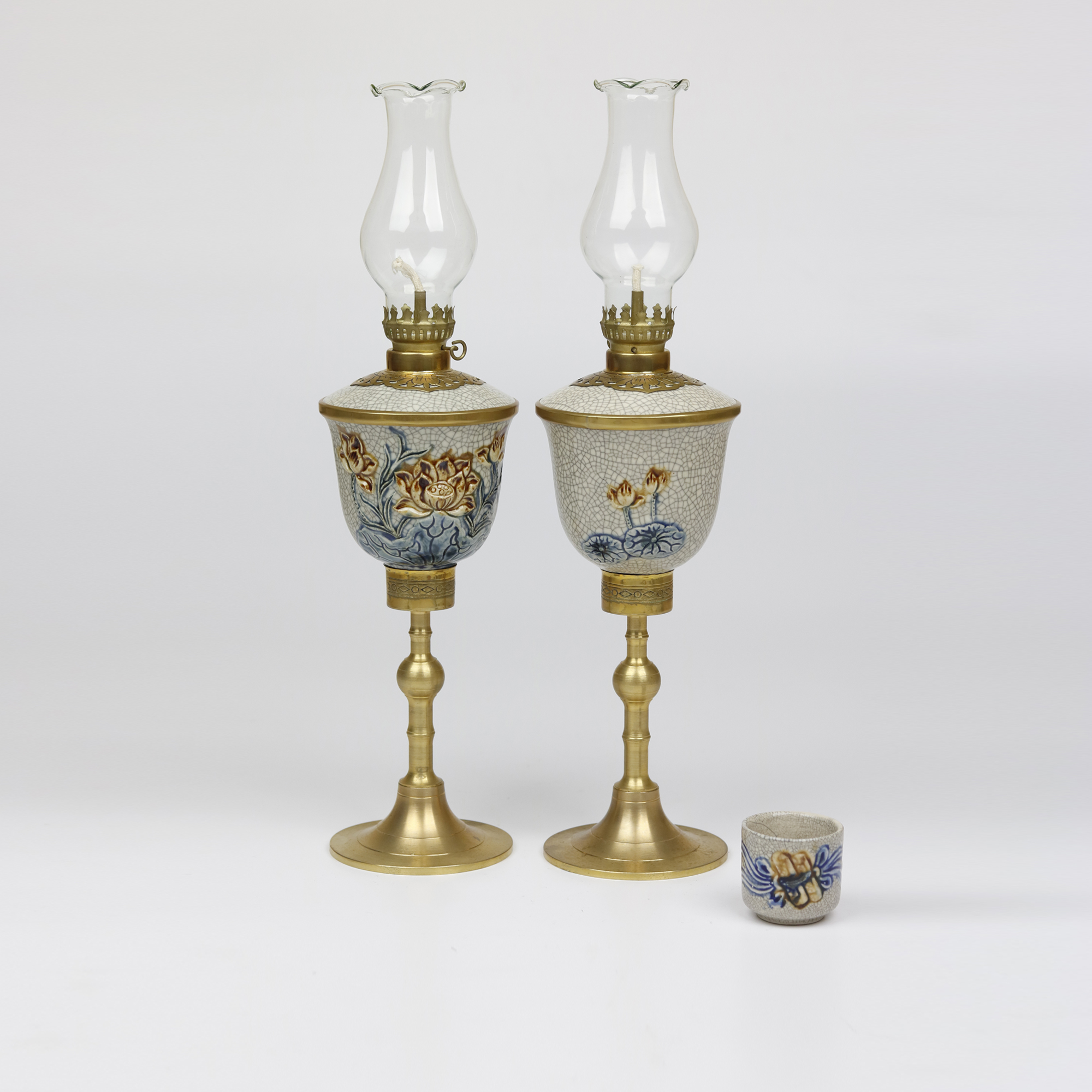Đèn dầu gốm sứ men rạn Bát Tràng chân đồng đắp nổi hoa sen Từ lâu đèn dầu đã đóng vai trò quan trọng trong văn hóa thờ cúng của người Việt Nam. Chiếc đèn