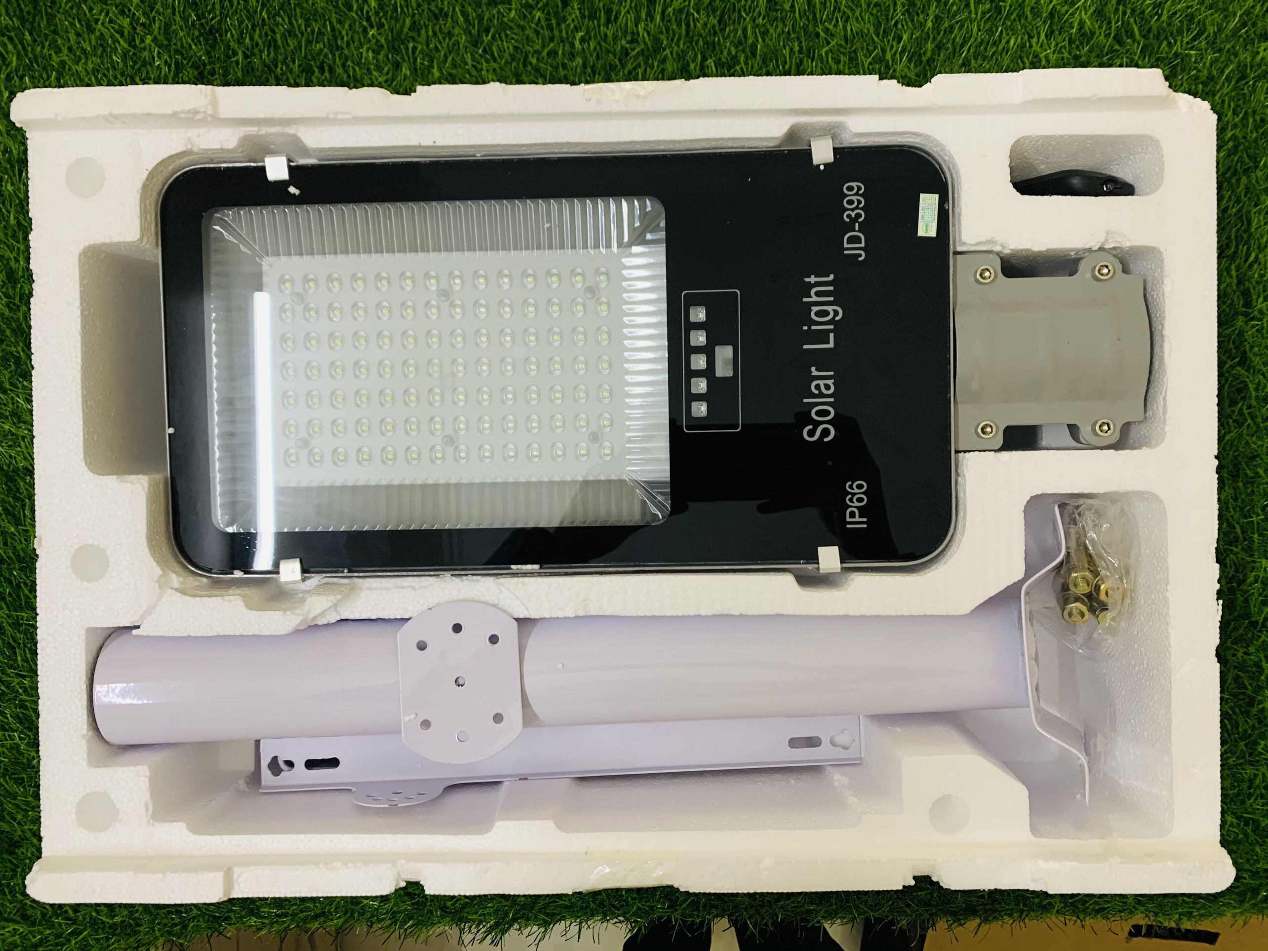 Đèn bàn chải năng lượng mặt trời JD-399 (100W): Thông tin sản phẩm Đèn được nhập khẩu và phân phối trực tiếp chính hãng từ nhà máy Hàn Quốc Dung luợng pin 3,2v -16.500 mah .Pin lithium chống chai Số chíp led: 98 LED Kích thước đèn: 500210 Kích thước tấm pin: 500340– 6v22w Chống nước IP 66 Thời gian sạc: 4-6H Thời gian sử dụng: > 12H Diện tích chiếu sáng ~ 120m2 Hoàn toàn tự động: Sáng khi trời tối và tắt khi trời sáng và có thể sử dụng bằng điều khiển Sắm 1 lần dùng mãi không mất đồng tiền điện nào Sản phẩm được bảo hành 3 năm – lỗi đổi mới trong vòng 2 năm ---> Thích hợp chiếu sáng: Sân vườn, công viên, trang trại, đường giao thông, không gian rộ