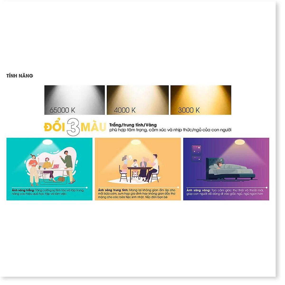 Công suất: 12W Điện áp: 220V/50Hz Quang thông: 930lm/910lm Nhiệt độ màu: 6500K/3000K Kích thước (ØxH): (138x50)mm ĐK lỗ khoét trần: 110mm - Sử dụng Chip LED Samsung đạt độ tin cậy cao - Chất