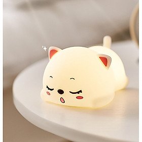 Đèn ngủ silicon Mèo nằm ngủ dễ thương - 16 màu sắc, chế độ thay đổi màu sắc đa dạng, tích hợp cảm biến chạm đổi màu, chế độ hẹn giờ tắt đèn,