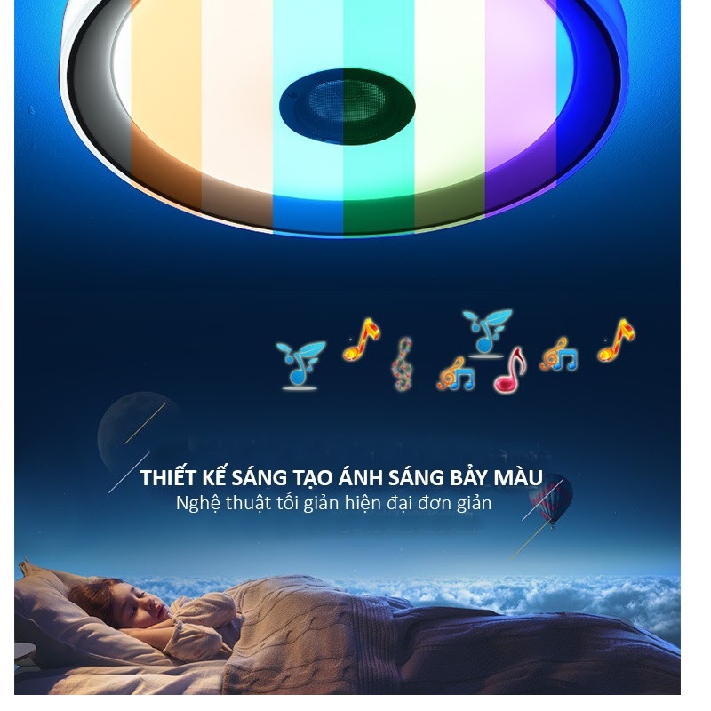 Đặc điểm: Đèn được trang bị một loa mạnh mẽ để phát nhạc thông qua kết nối bluetooth từ điện thoại thông minh. Với ứng dụng được phát triển đặc biệt, màu sắc và độ