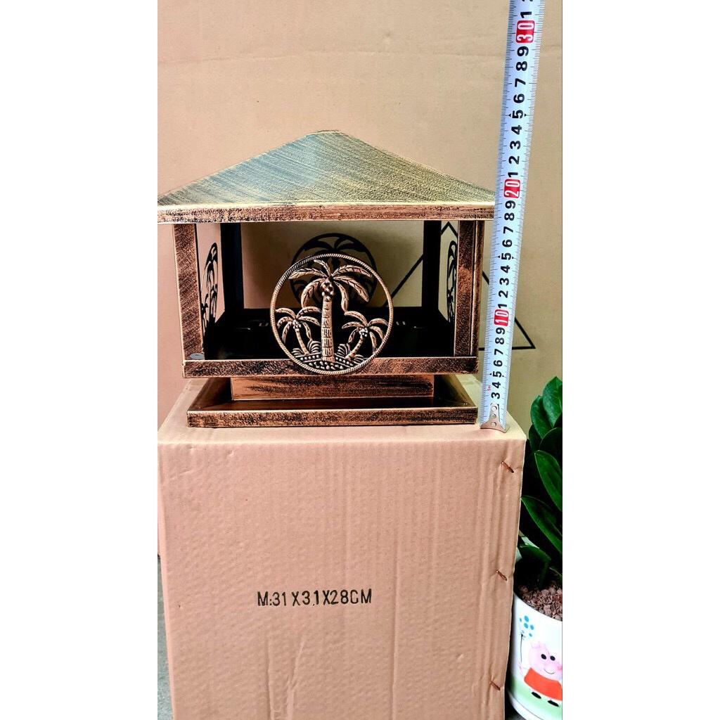 hông tin sản phẩm: kích thước : 30cm D25cm D20cm Đèn được làm bằng thép sơn chống gỉ Đèn cổng trang trí hiện nay thuộc một trong những mẫu đèn trang trí ngoại thất được nhiều khách hàng lựa chọn và trở thành một xu hướng tiết kiệm điện năng mới. Thiết kế của đèn rất đa dạng với nhiều kiểu dáng mẫu mã cũng như những đèn trụ cổng sử dụng điện năng khác. Vị Trí Lắp Đèn Lắp đèn trang trí chiếu sáng ở cổng chính của ngôi nhà. Lắp đèn trụ ở tường rào xung quanh. Lắp đèn trụ ở cầu thang, lan can ở những ngôi nhà có thiết kế ở ngoài trời. Lắp các trụ hướng dẫn lỗi đi trong sân vườn hay lối đi vào nhà chính,…