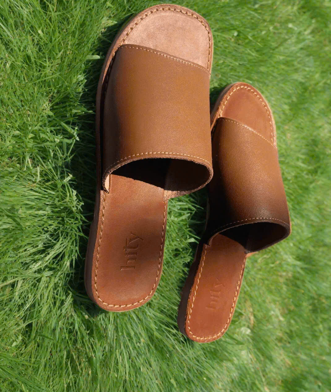 ✨Dép Lê Quai Ngang Da Bò FTW001BROWN thời trang thiết kế Hity