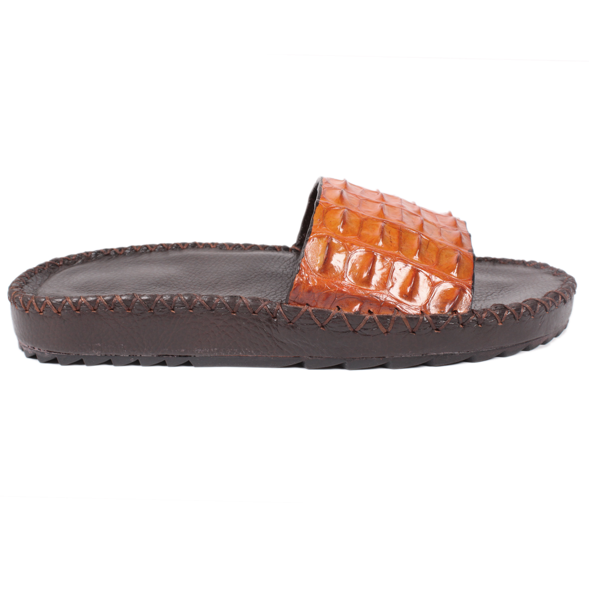 Dép nam da cá sấu 2 quai ngang màu nâu
