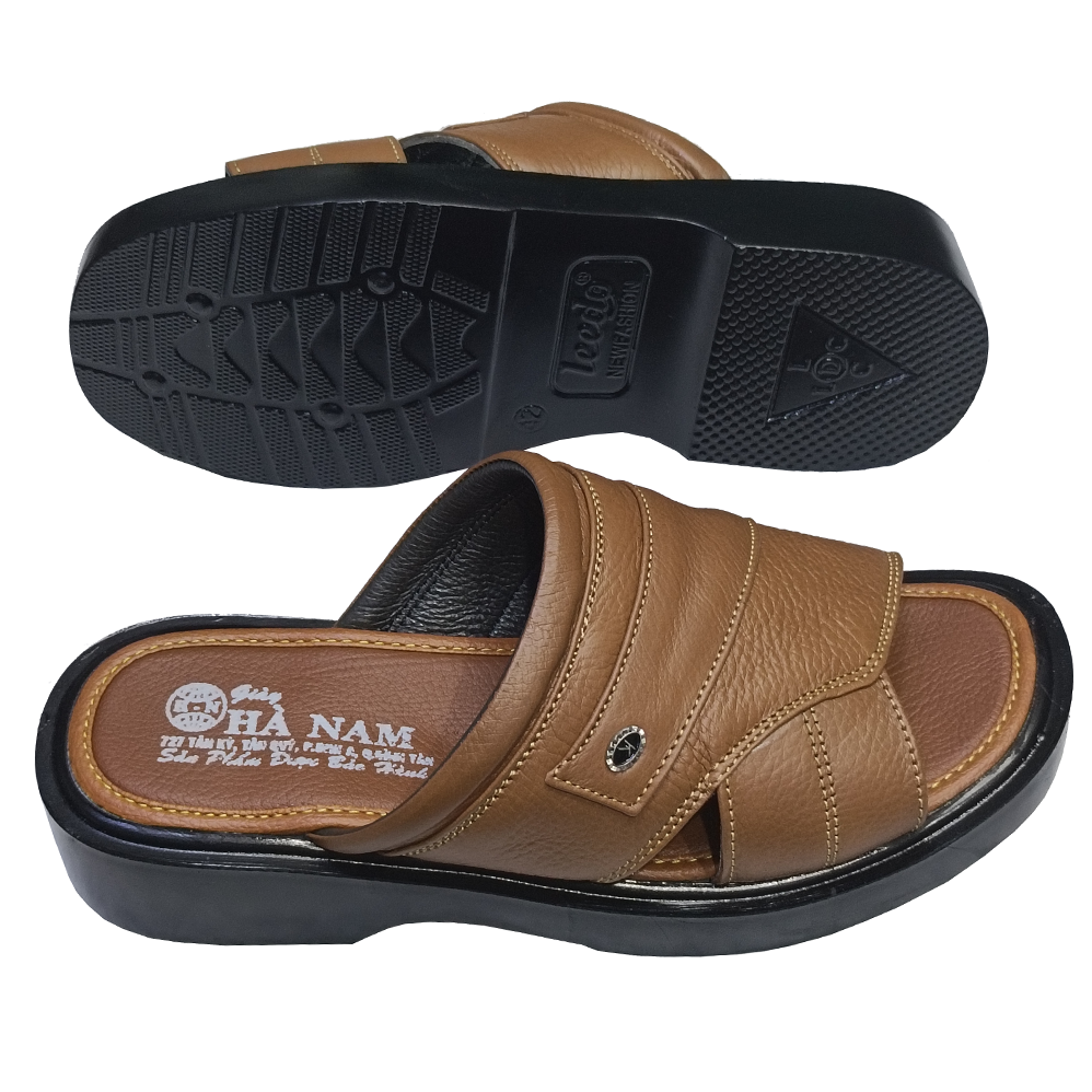 DÉP NAM DA BÒ CAO CẤP - THƯƠNG HIỆU HÀ NAM - Da bò thật, bền đẹp: Dép nam được làm từ 100% da bò thật, mềm mại, thoáng khí, đảm bảo độ bền cao