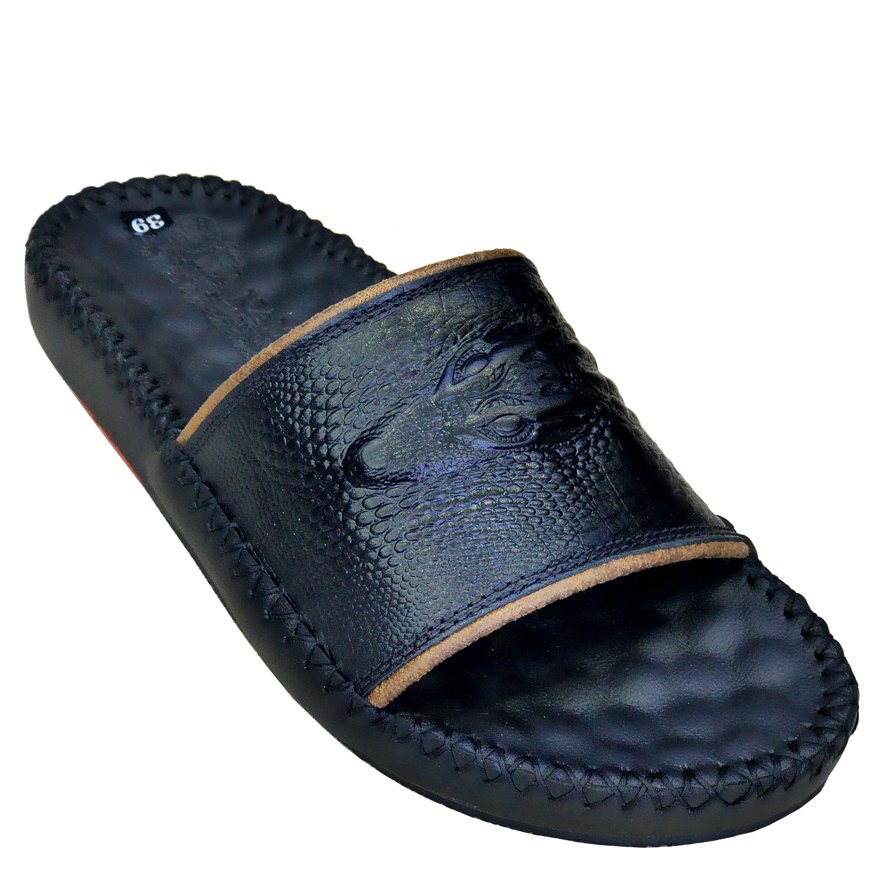 DÉP NAM BA QUAI DA BÒ,QUAI CÓ GẮN KHUY ĐẸP MẮT Dép quai ngang cá sấu da bò 100% Chất liệu: Da bò thật thật 100% da bò tự nhiên Đế cao su tốt đi