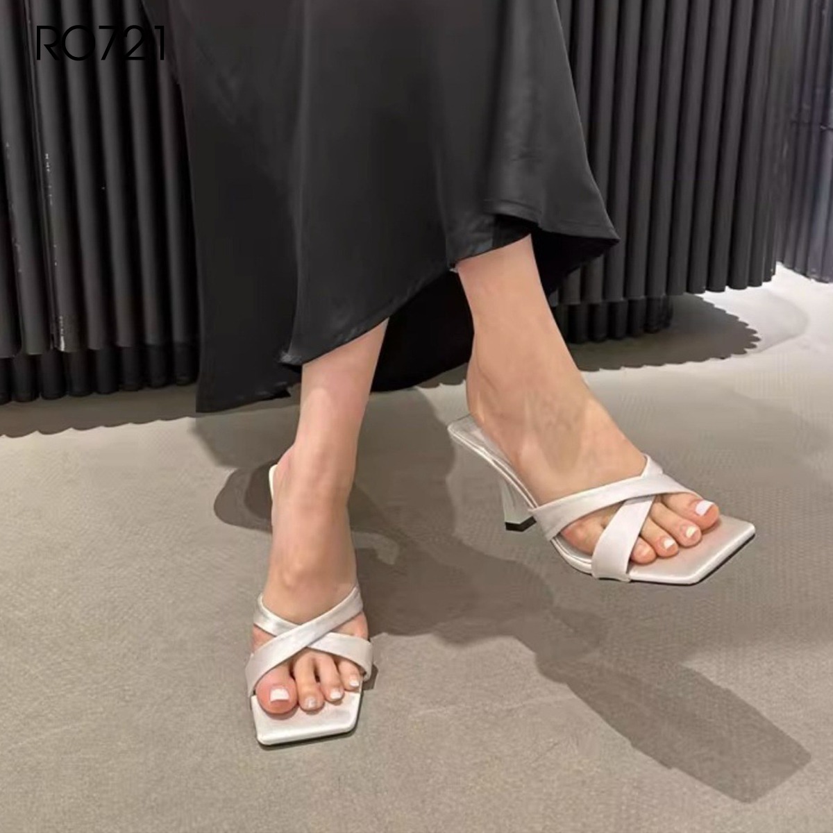 MÔ TẢ SẢN PHẨM: Dép nữ quai chéo, gót nhọn ROSATA RO721 - 7p - Đen, Kem - BKSTORE