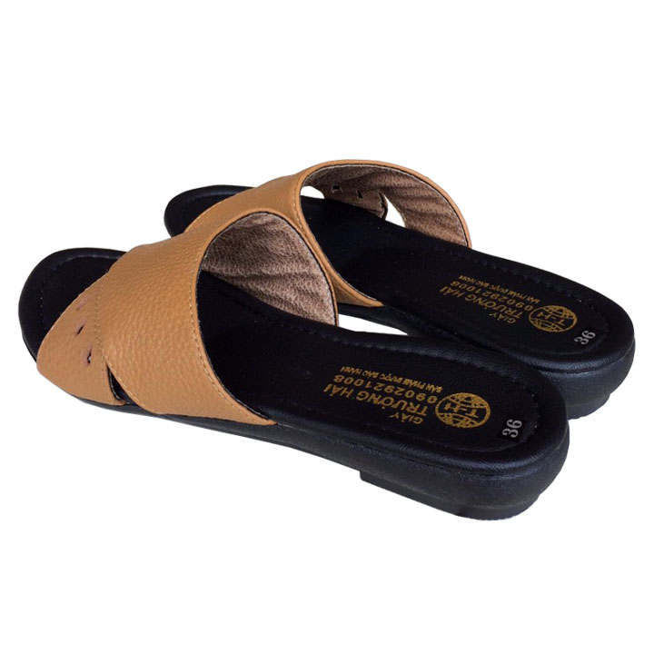 ✨Dép nữ quai ngang 1 bản da bò đế đúc cao cấp Trường Hải QNN01264