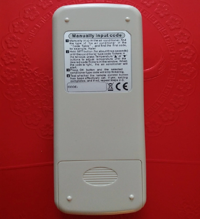 - Khối lượng 90 gram Hướng dẫn cài đặt tần số điều khiển đa năng điều hòa. Cách cài đặt remote đa năng bằng tay: Bước 1: Bật điện vào điều hòa. Hướng điều khiển về mắt nhận tín hiệu trên điều hòa. Bước 2: Bấm và giữ nút “SET” (khoảng 3 đến 5 giây) cho đến khi mã tần số trên màn hình nhấp nháy,Ấn nút tăng/giảm Nhiệt Độ▲ ▼ cho đến khi chọn được tần số thích hợp (VD: Tần số điều hòa Fujitsu là từ 700 đến 719). Khi chọn đúng mã, điều hòa sẽ bận lên hoặc có tiếng kêu tít tít. Bước 3: Bấm nút “OK” để xác nhận, khi đó tần số được xác lập và mã tần số sẽ hết nhập nháy. Bước 4: Kiểm tra xem các nút trên điều khiển đã hoạt động đúng hay không. Nếu hoạt động đúng có nghĩa quá trình cài đặt đã hoàn tất. Cách cài đặt remote đa năng tự động. Nếu điều hòa không có mã Code thì phải dò tự động theo cách sau: Hướng điều khiển về phía điều hòa.Bấm và giữ nút "Set"(Khoảng 6 giây) điều khiển sẽ tự động chạy dò mã bắt đầu từ 000 đến 999. Khi nào thấy điều hòa có tiếng kêu tít tít là đã dò đúng mã. (Chú ý:Khi điều khiển dò đúng mã của điều hòa nhưng vì dò tự động nên mã vẫn nhảy liên tục đi lên ví dụ mã là 291 nhưng lại vẫn dò lên cao hơn là 300.Ấn phím điều chỉnh nhiệt độ xuống khi nào thấy kêu tít tít là đúng mã). Ấn nút Ok>Quá trình cài đặt đã hoàn tất.