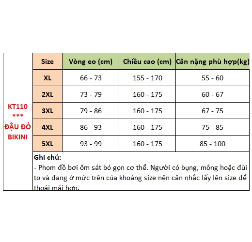 - Size Nữ (tùy chiều cao): One Size cho cân nặng từ 38-50Kg - Màu chủ đạo: Nhiều màu và mẫu theo lựa chọn của khách hàng. - Thiết kế hai mảnh, có sẵn mút