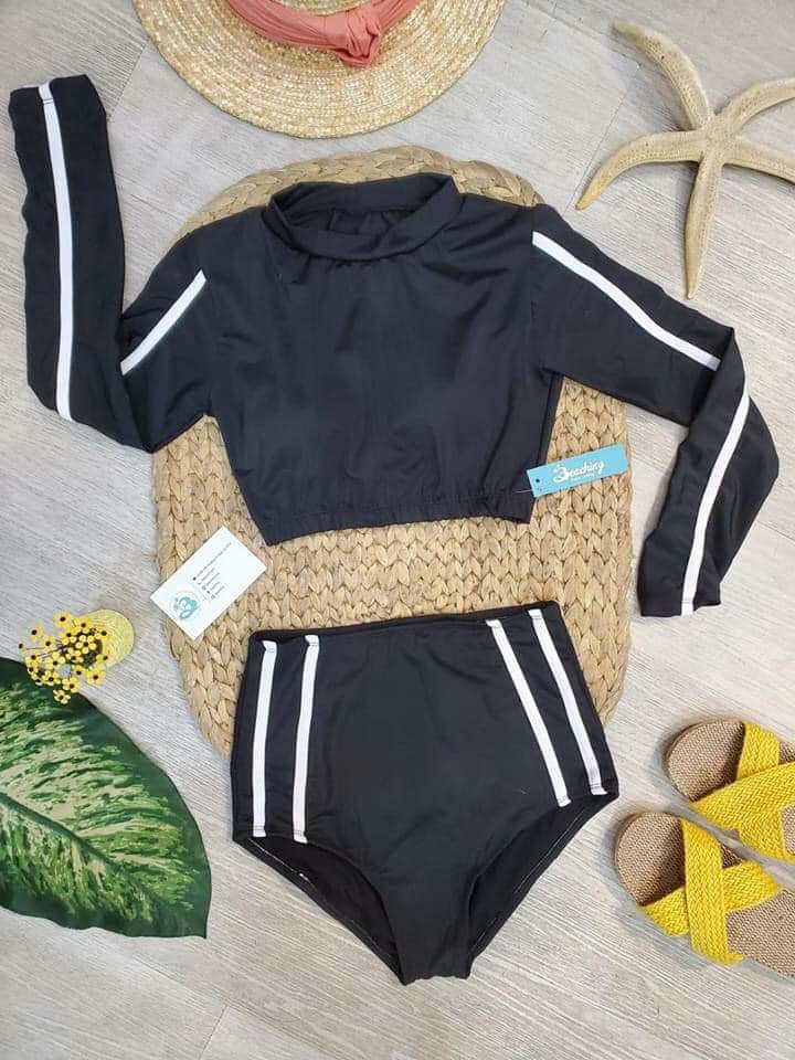 Set Đồ Bơi Nữ Rời Đùi Dài Tay Đi Biển Đi Bơi Chất liệu Polyester 95%, mật độ dệt vừa Áo có sẵn lớp đệm, hông áo có thể rút lên làm croptop cá tính