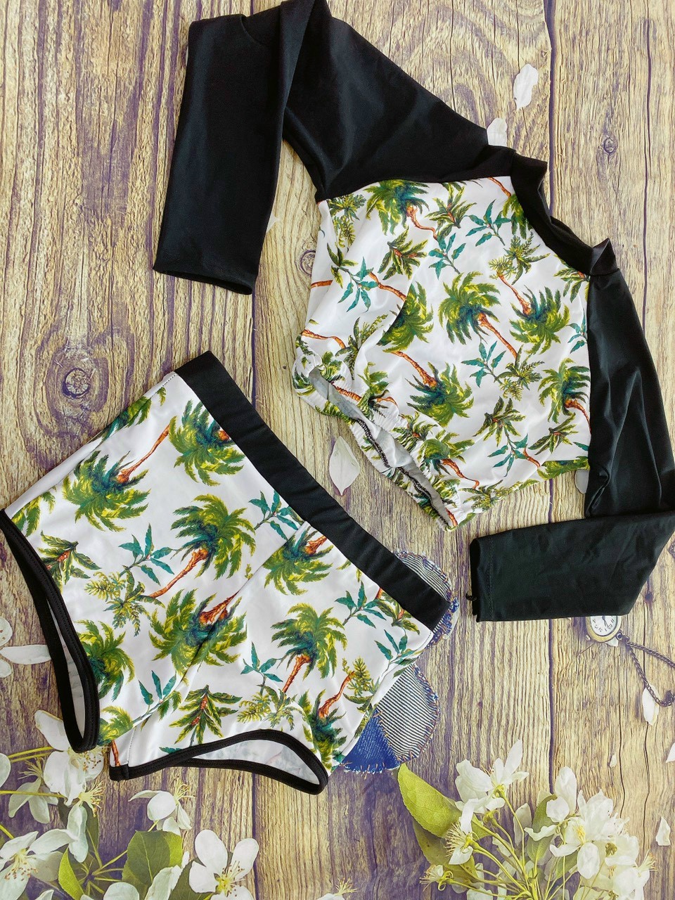 - Mẫu đồ bơi đôi cực xinh cho các couple đi biển cùng nhau ạ, dáng dài tay chống nắng thể thao tiện dụng. - Set 3 chi tiết bao gồm: Áo bơi dài tay