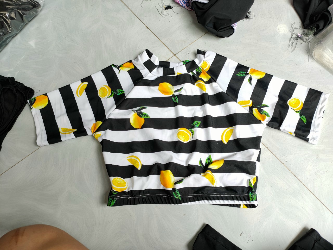 - Mẫu đồ bơi mới nhất cho các bạn nữ thích sự trẻ trung kín đáo mà vẫn thu hút khi đi biển, đi bơi. - Áo dáng ngắn tay phối hoạ tiết trẻ khoẻ,