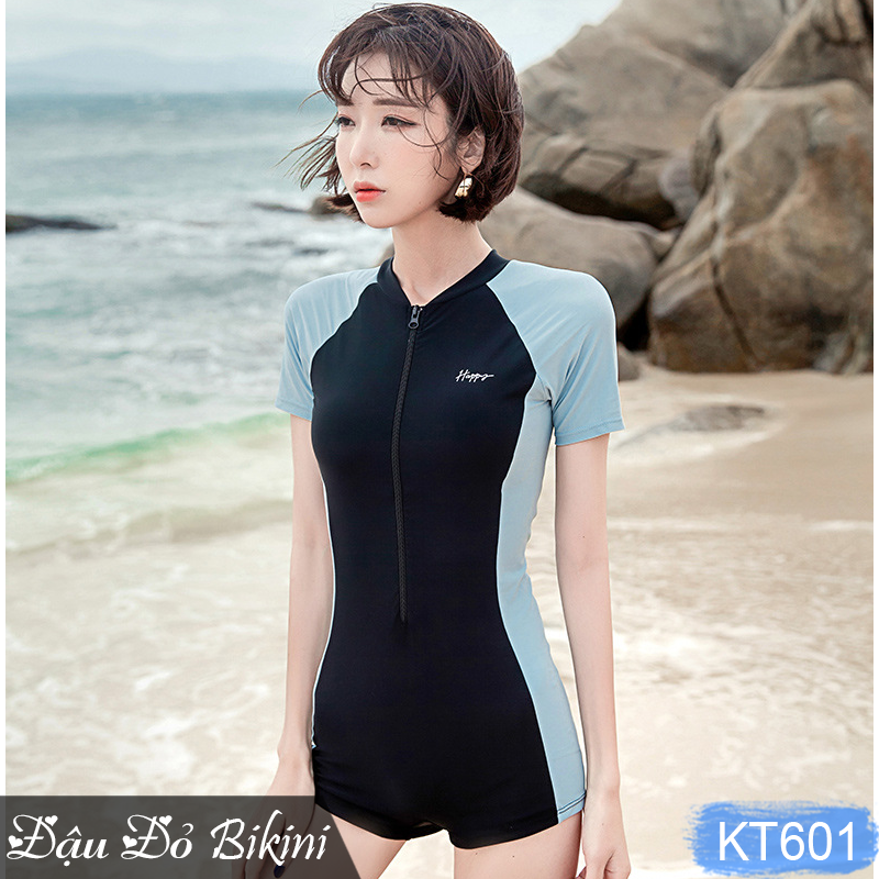 - Mẫu đồ bơi áo tắm dành cho các bạn gái thích dáng kín đáo nhưng vẫn trẻ trung, năng động. - Dáng quần short (đùi) thể thao, áo thun cộc tay kèm khoá kéo