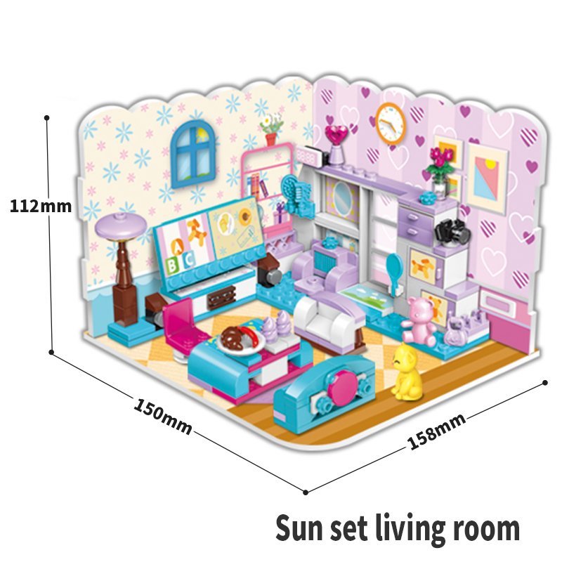 Đồ chơi lắp ráp Mô hình Căn phòng xinh có thể ráp được 3 mô hình khác nhau: Phòng ngủ, Phòng khách, Căn bếp
