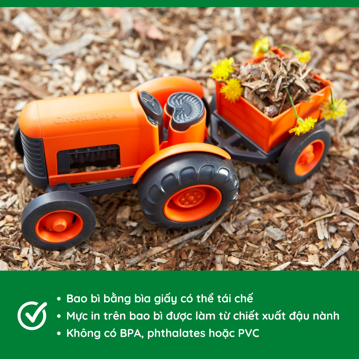 Máy kéo Green Toys chuyên chở các sản phẩm xanh từ trang trại tới bàn ăn. Với bánh xe lớn, đi được trên mọi địa hình và một toa kéo phía sau có thể tháo rời, những người nông dân nhí có thể thu hoạch và chuyên chở nông sản organic tươi mới nhất theo trí tưởng tượng phong phú của bé.