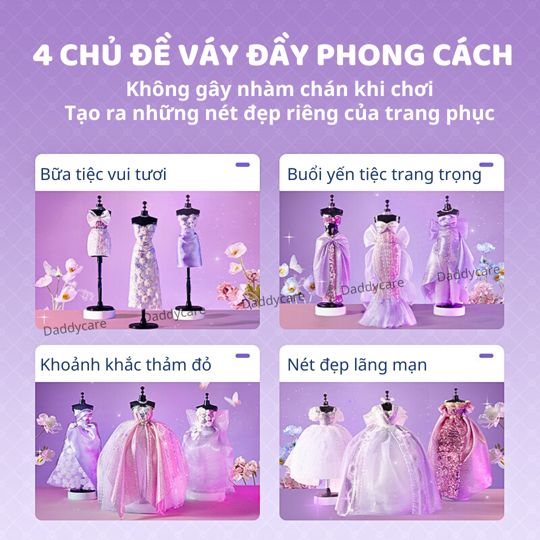 - 16 Chất liệu cao cấp – Lung linh như cổ tích - Được chế tác từ các chất liệu tinh tế như voan, satin, ren và ngọc trai, cùng các phụ kiện như dải ruy băng và miếng dán kim cương, bộ đồ chơi mang đến cảm giác sang trọng, đẳng cấp