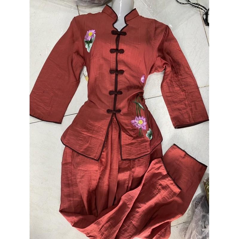 Chất Vải Lụa Pháp Phối Gấm Cao Cấp Hoặc Vải Lụa Phối Gấm Tuỳ Màu Và Size Nên Chất Vải Khác Nhau Quần Ống Rộng Cổ Áo Chui Không Cài Nút BÁN LẺ GIÁ SỈ