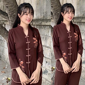 quần áo Phật tử cổ tàu cài chéo - đồ lam đi chùa Sen Hồng - set Phật tử nữ đẹp 0898553583