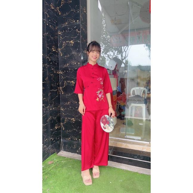 Chất Vải Lụa Pháp Phối Gấm Cao Cấp Hoặc Vải Lụa Phối Gấm Tuỳ Màu Và Size Nên Chất Vải Khác Nhau Quần Ống Rộng Cổ Áo Chui Không Cài Nút BÁN LẺ GIÁ SỈ