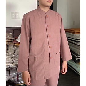 Quần áo cư sĩ nam - đồ lam đi chùa Phật tử nam - pháp phục Sen Hồng