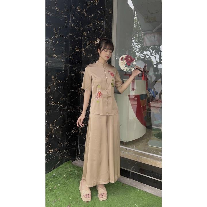 Chất Vải Lụa Pháp Phối Gấm Cao Cấp Hoặc Vải Lụa Phối Gấm Tuỳ Màu Và Size Nên Chất Vải Khác Nhau Quần Ống Rộng Cổ Áo Chui Không Cài Nút BÁN LẺ GIÁ SỈ