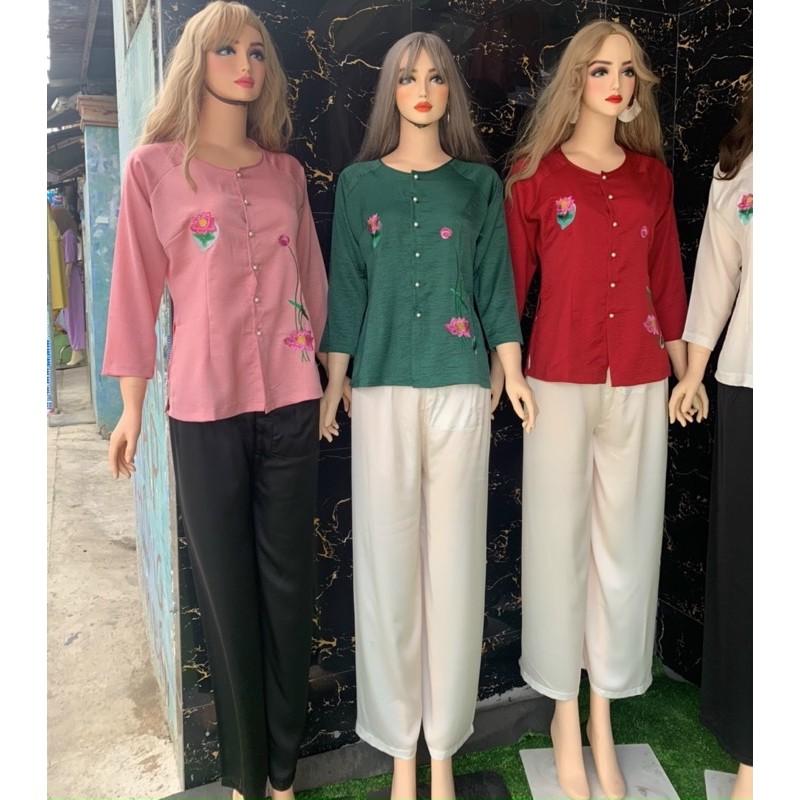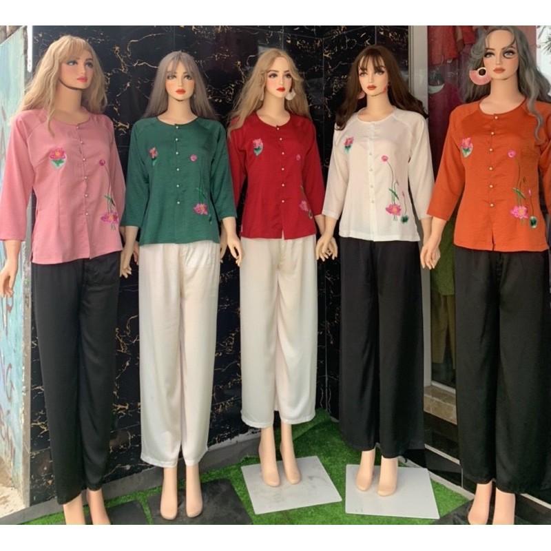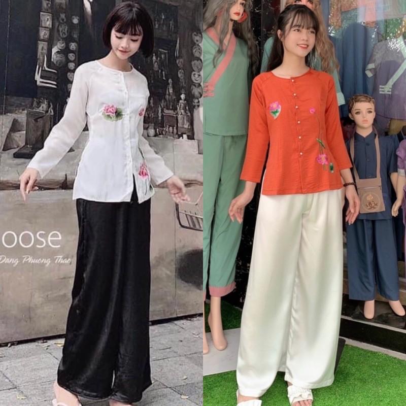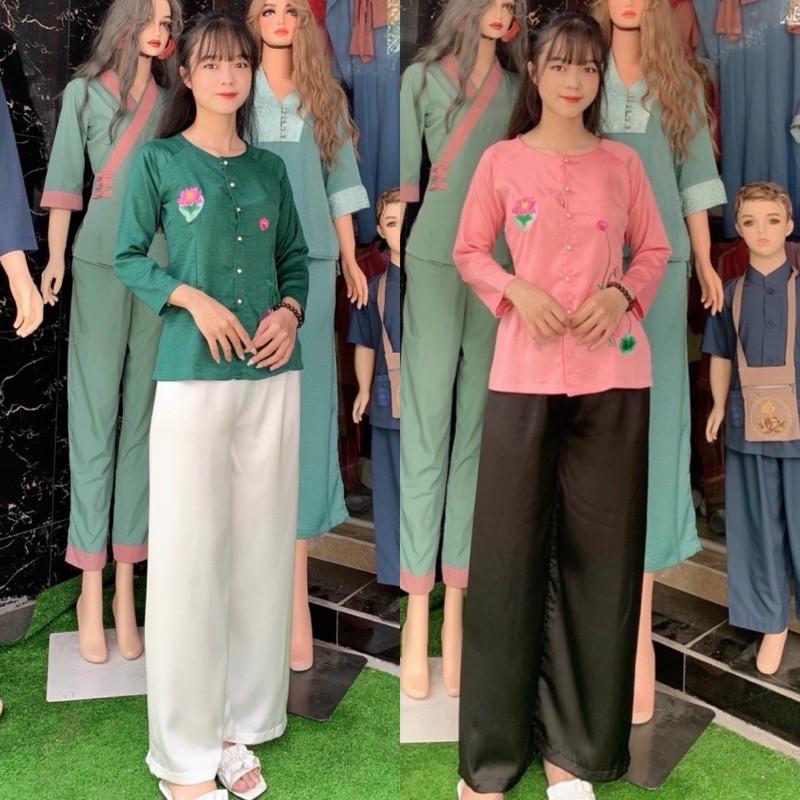✨Đồ Lam Đi Chùa #Thêu Hoa Lụa Pháp Cao Cấp # Quần Áo Nữ # Đồ Bộ Nữ
