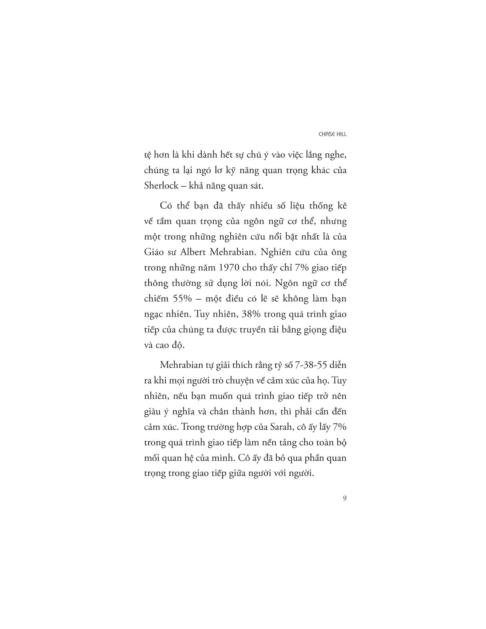 Theo nhà tâm lý học hành vi nổi tiếng, Tiến sĩ Albert Mehrabian, chỉ có 7% thông điệp liên quan đến cảm xúc và thái độ được thể hiện bằng lời nói. Phần còn lại thuộc về giọng điệu và ngôn ngữ cơ thể của người đó. Do đó, việc giải mã các tín hiệu không bằng lời này sẽ giúp chúng ta hiểu được toàn bộ câu chuyện đằng sau thông điệp của một người.