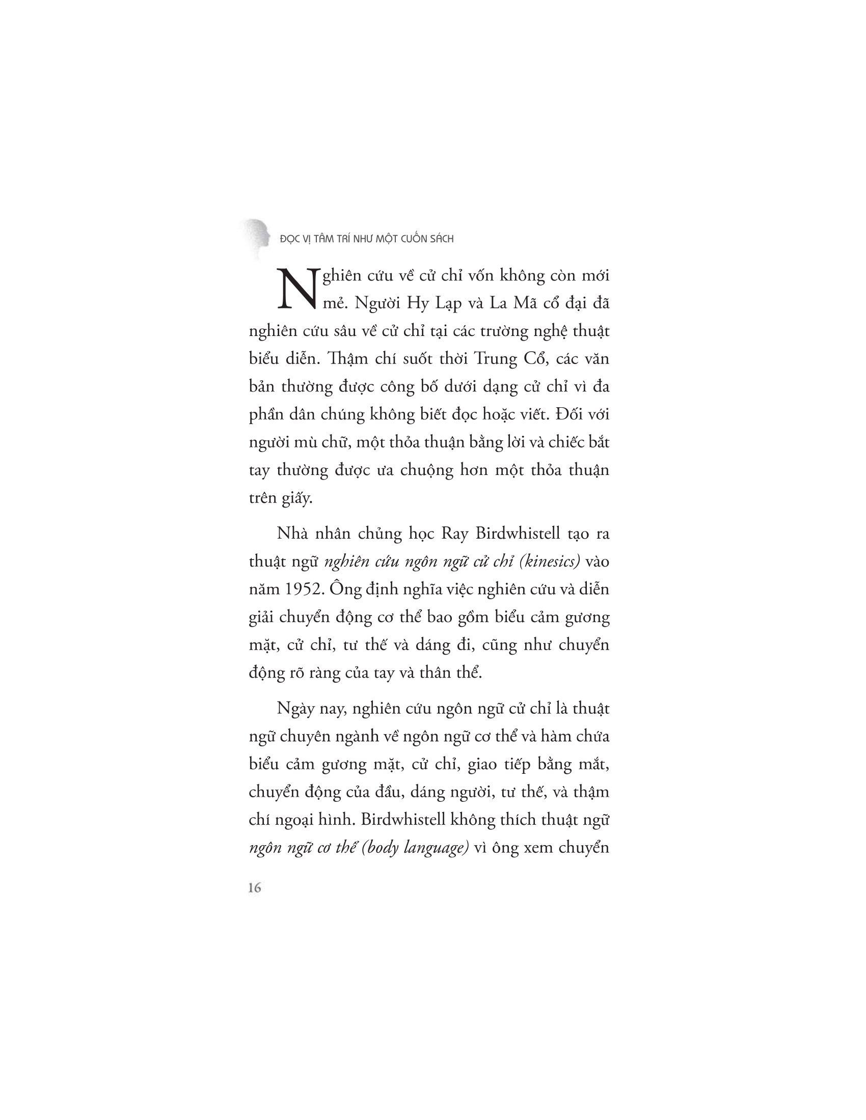 Và cuốn sách “Đọc vị tâm trí như một cuốn sách” là cuốn cẩm nang vô cùng hữu ích, sẽ giúp bạn giải mã những thông điệp thầm lặng của người khác.