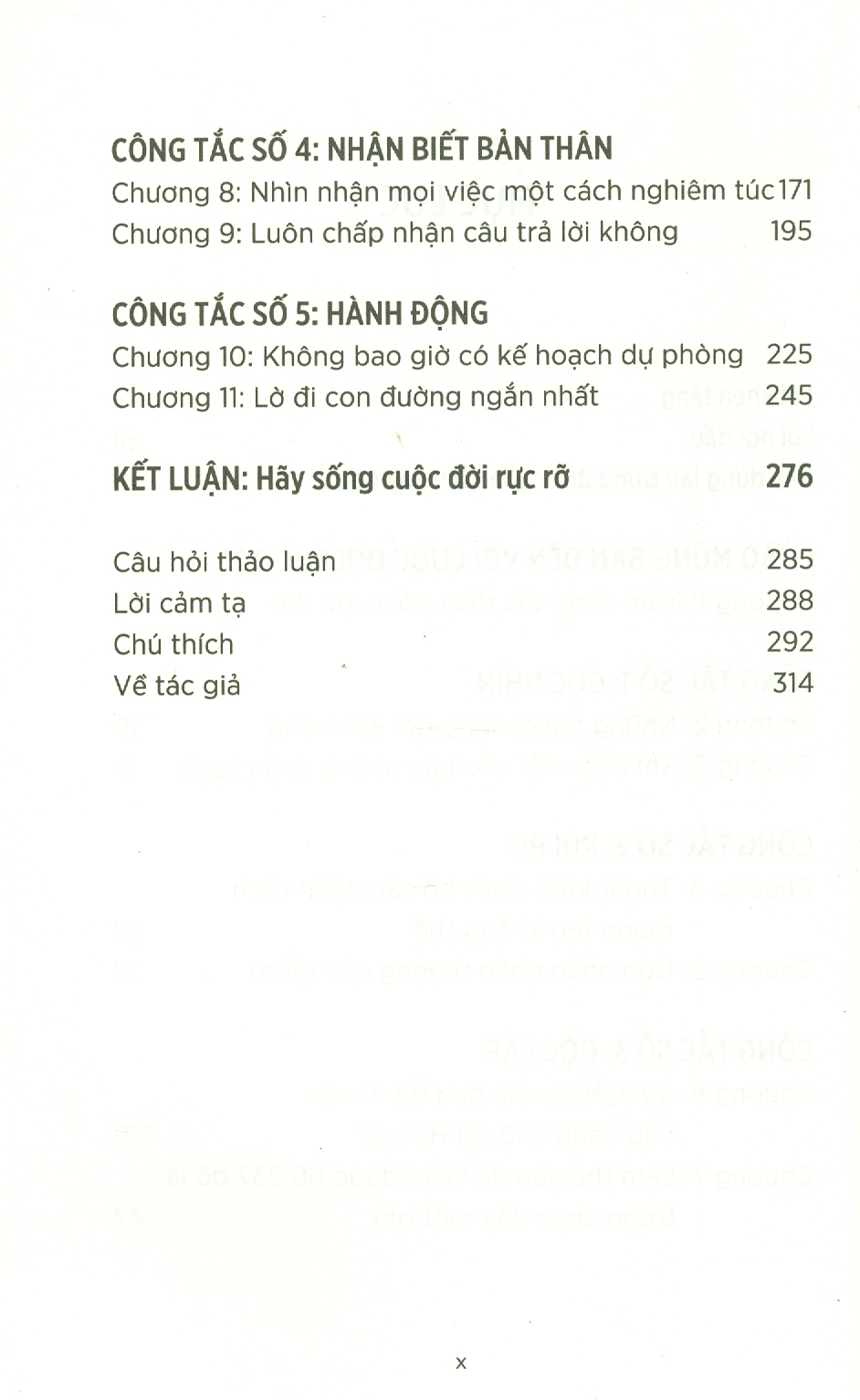 Điều gì tạo nên sự khác biệt giữa một người bình thường và những con người vĩ đại? Đó có phải là sự may mắn, xuất thân hay tài năng thiên bẩm? Trong cuốn sách này, tác giả đã chứng minh rằng bạn không cần có những điều trên để thành công. Mỗi người đều mang trong mình một sự vĩ đại, hay nói cách khác là bản thể tốt nhất của mình, và nó vẫn đang say ngủ. Để đánh thức sự vĩ đại trong mình, điều cần làm là bật lên "năm chiếc công tắc nội tại". Và việc của bạn là lựa chọn, lựa chọn bật lên năm chiếc công tắc ấy và lựa chọn sống Cuộc đời Xám nhạt hay Cuộc đời Rực rỡ.