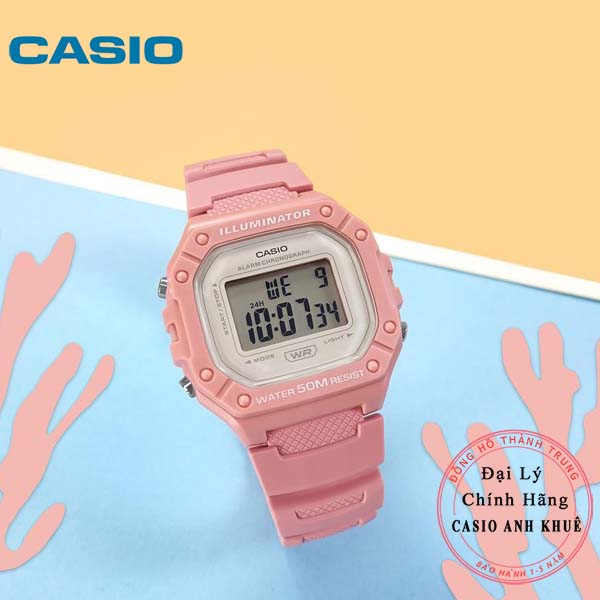 ✨Đồng Hồ Casio W-218HC-4AVDF Dây Nhựa Màu Hồng - Mặt Vuông - WR50M