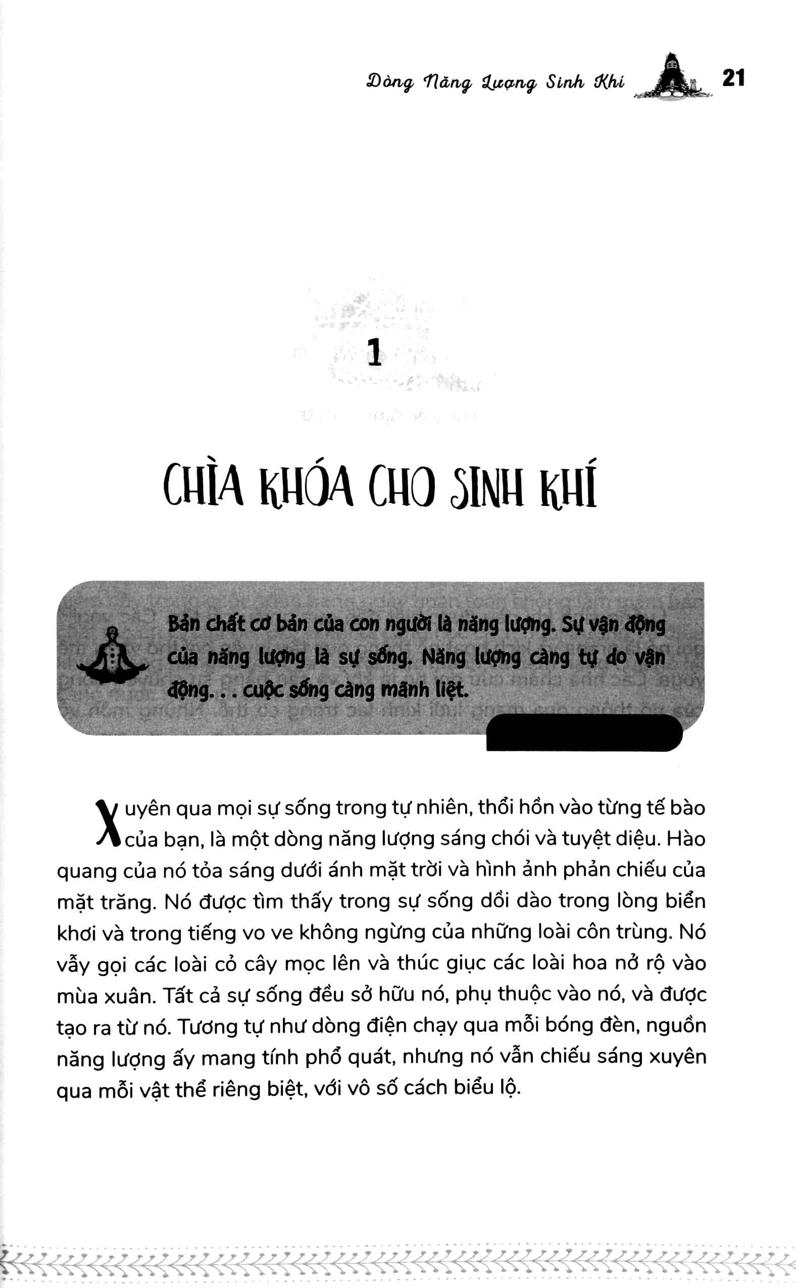 Quyển sách này nỗ lực trả lời những câu hỏi trên mà không cố chứng minh rằng năng lượng tồn tại, cũng không cố đo lường nó.DÒNG NĂNG LƯỢNG SINH KHÍđúng hơn là một chuyên luận về cách năng lượng hoạt động bên trong tâm lý nội tại của chúng ta và cách nó hình thành nên con người và thúc đẩy những hành động; cũng như lý giải tại sao năng lượng lại là nguyên nhân dẫn đến những thách thức và đau khổ. Một khi học được cách sử dụng dòng năng lượng, bạn sẽ có được chiếc chìa khóa vô giá giúp hợp nhất tâm trí và thân thể thông qua ma trận năng lượng tiềm ẩn của nó.