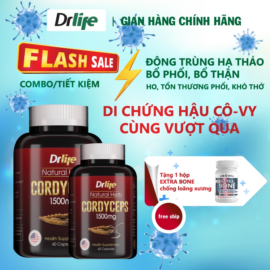 �� Đông Trùng Hạ Thảo Drlife Cordyceps Tốt Cho Sức Khỏe, Bổ Phổi, Tăng Cường Sức Đề Kháng, Giảm Mệt Mỏi, Chống Lão Hóa, Nâng Cao Thể Lực - 60 viên/Hộp - HSD: 05/2025 -