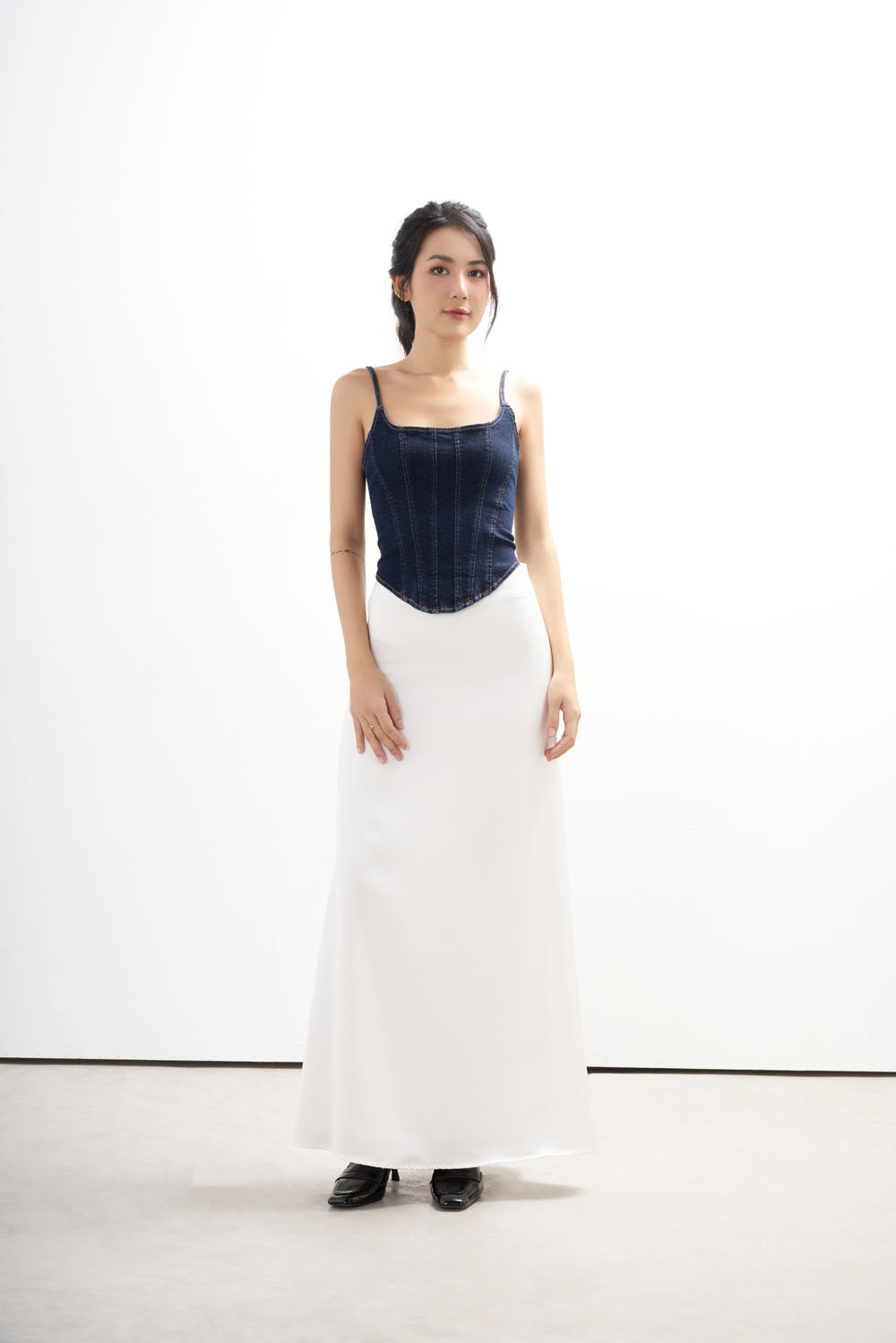 ✨DOTTIE - Chân váy maxi vải satin - Trắng - S0168