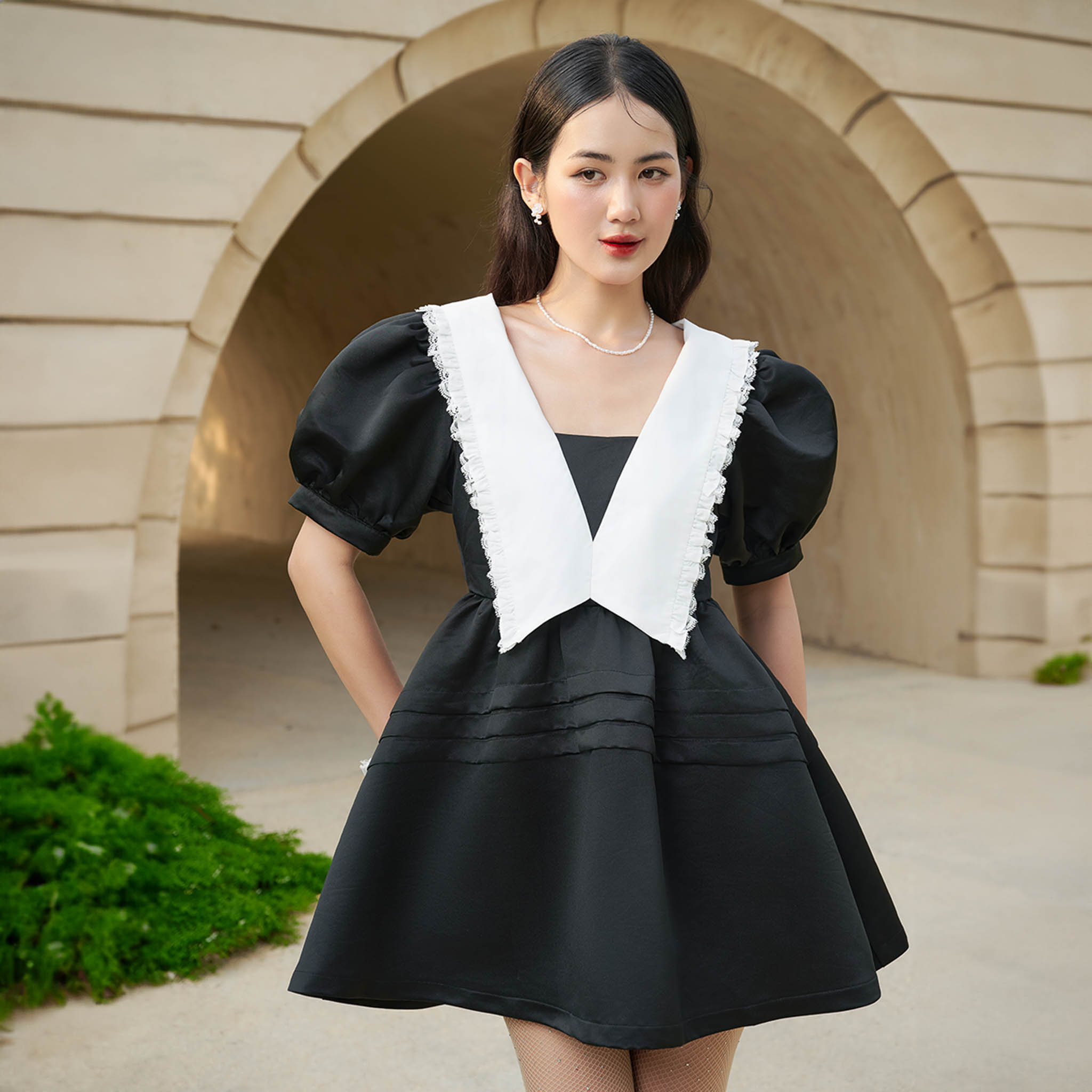 --------------- CHI TIẾT SẢN PHẨM ✿ Sản phẩm : Đầm ngắn nữ tiểu thư cổ tròn phối viền xếp ly xinh xắn đi học, đi chơi Jirachi Miều Est.2013 ✿ Chất liệu : Cotton Hàn