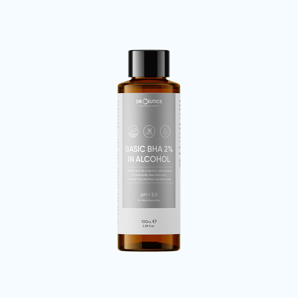 Dung dịch DrCeutics Basic BHA 2% In Alcohol Thành phần: Acid salicylic: giúp làm bong tế bào da, tiêu sừng, thông thoáng và giảm kích thước lỗ chân lông, chống viêm, kháng khuẩn, kháng nấm,