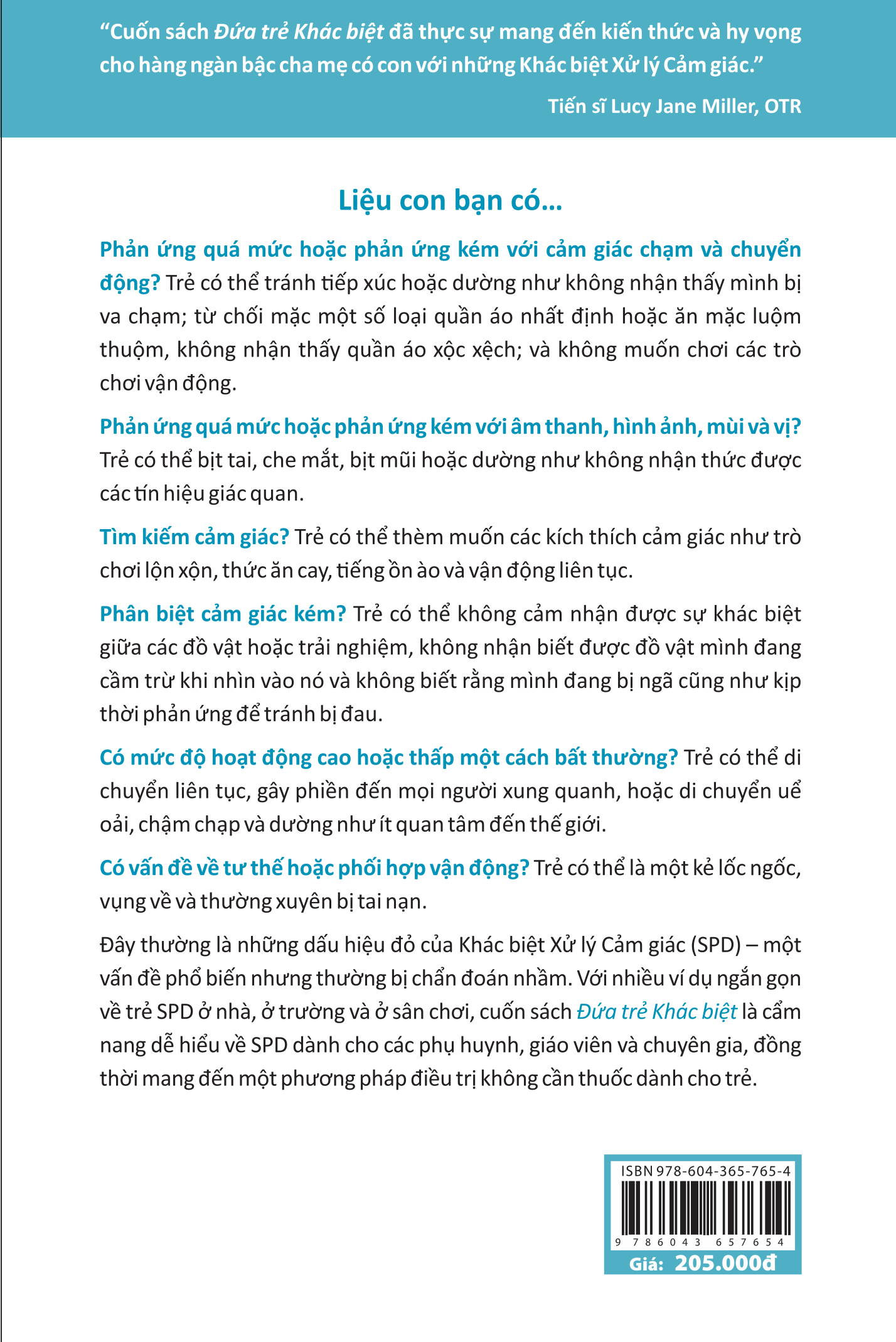 “Cuốn sách Đứa trẻ Khác biệt đã thực sự mang đến kiến thức và hy vọng cho hàng ngàn bậc cha mẹ có con với những Khác biệt Xử lý Cảm giác.” ---Tiến sĩ Lucy Jane Miller, OTR “Đứa trẻ khác biệt đã trở thành kinh thánh cho các bậc cha mẹ có con với những Khác biệt Xử lý cảm giác.” ---Thời báo New York