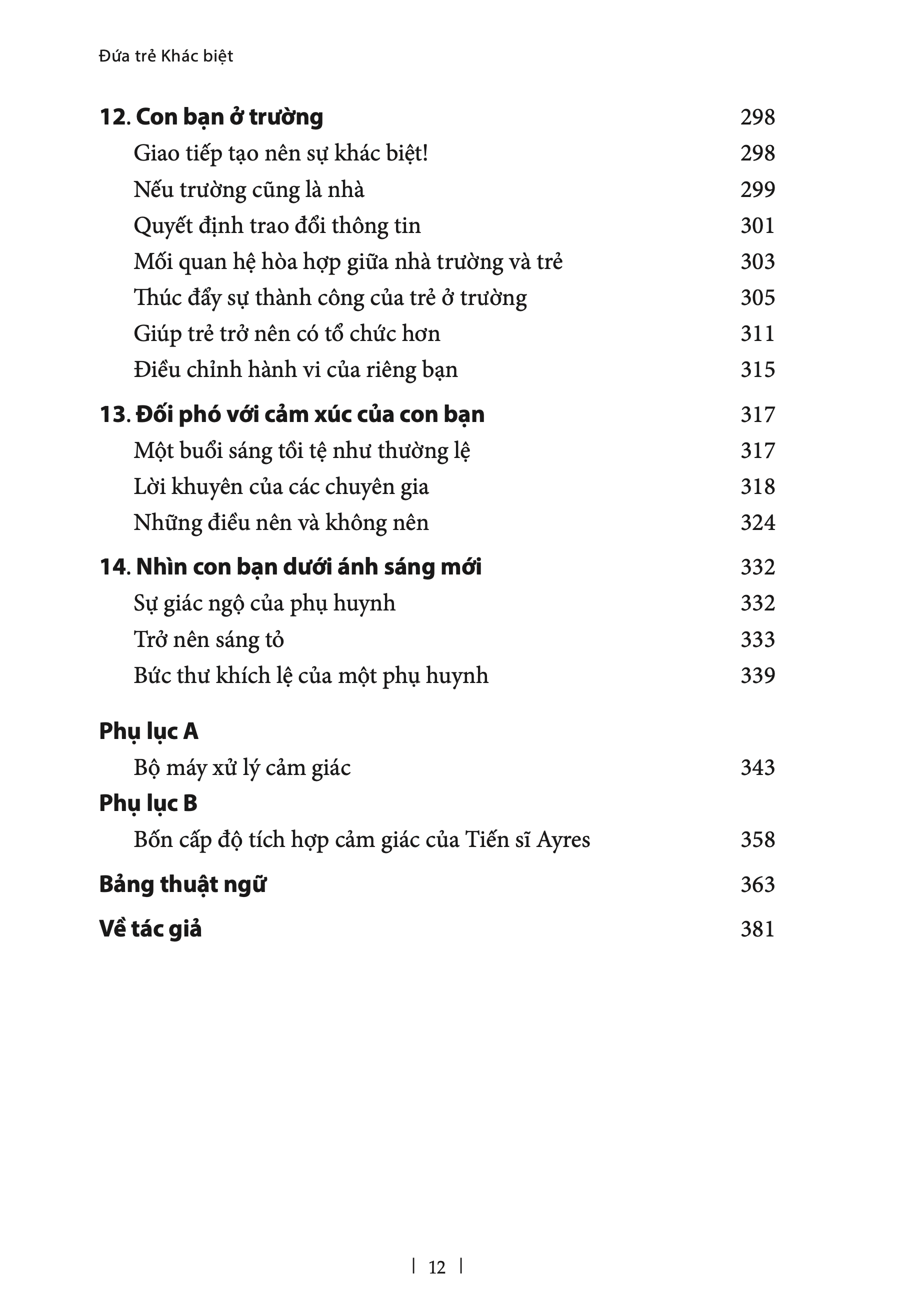Cuốn sách Đứa trẻ khác biệt được chuyển ngữ từ tác phẩm tiếng Anh nổi tiếng “Out-of-sync Child” của tác giả Carol Stock Kranowitz. Nếu bạn đã từng muốn tìm hiểu về rối loạn xử lý cảm giác (SPD) thì chắc chắn bạn đã được giới thiệu cuốn “Out-of-sync Child” – cuốn sách được coi là KINH THÁNH dành cho các bậc cha mẹ có con SPD. Carol là tác giả đầu tiên viết về chủ đề SPD đầy khó hiểu này bằng thuật ngữ phổ thông. Với những ví dụ cụ thể về đứa trẻ rối loạn ở nhà, nhà trường và ở cộng đồng, bạn sẽ có một bức tranh tổng quát về SPD. Bạn sẽ cảm thông hơn khi thấy đứa trẻ khó giao tiếp mắt, sợ tiếng động, thích ăn cay, ngọ nguậy liên tục, vận động liều lĩnh mà không biết sợ,… Cuốn ĐỨA TRẺ KHÁC BIỆT bao gồm 14 chương, với những liệt kê chi tiết về đặc điểm của trẻ với những khác biệt về xúc giác, tiền đình, cảm thụ bản thể, thị giác, thính giác. (Tác giả dùng thuật ngữ Khác biệt xử lý cảm giác vì từ “Khác biệt” có hàm nghĩa rộng hơn từ “Rối loạn”). Bạn cũng được tư vấn những chiến lược hữu ích để đối phó với SPD và cảm xúc của con bạn do SPD gây ra ở nhà, ở trường và trong cộng đồng. Trên tất cả, thông qua tác phẩm, bằng sự ấm áp và uyên thâm của mình, Carol đã giúp các bậc cha mẹ có cái nhìn thấu cảm để trở thành người bênh vực cho con mình tại nhà và trường học. Tiếng nói và hành động của cha mẹ tác động rất lớn đến việc hỗ trợ của nhà trường và cộng đồng dành cho trẻ khác biệt. Trong tác phẩm của mình, Carol chỉ rõ con đường của cải thiện các giác quan là thông qua vận động. Bà khuyến khích sử dụng hoạt động trị liệu (OT) cho trẻ SPD. Nếu dịch vụ OT không có sẵn cho con bạn, thì một cuộc sống phong phú các hoạt động về giác quan tại nhà do các bậc cha mẹ cung cấp cho con mình là vô cùng quan trọng.