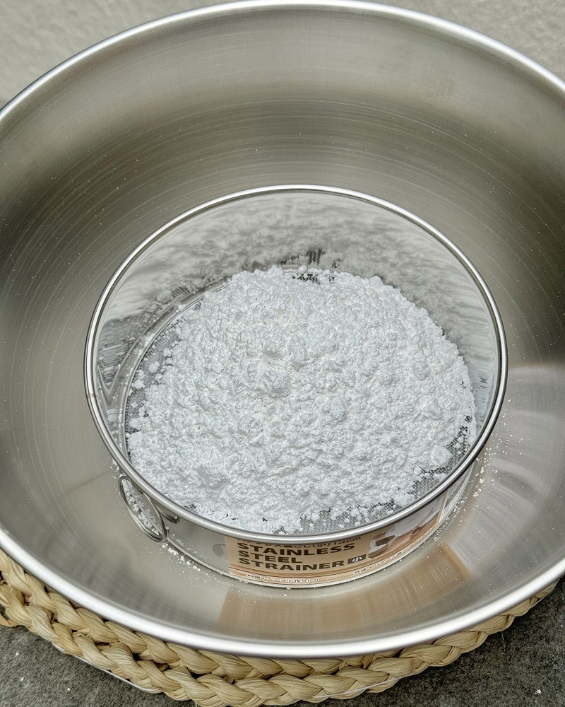 Thiết kế với chất liệu inox chắc chắn, tấm lưới đan nhỏ đều tinh tế, giúp giải quyết được tình trạng bột bị vón cục không mong muốn