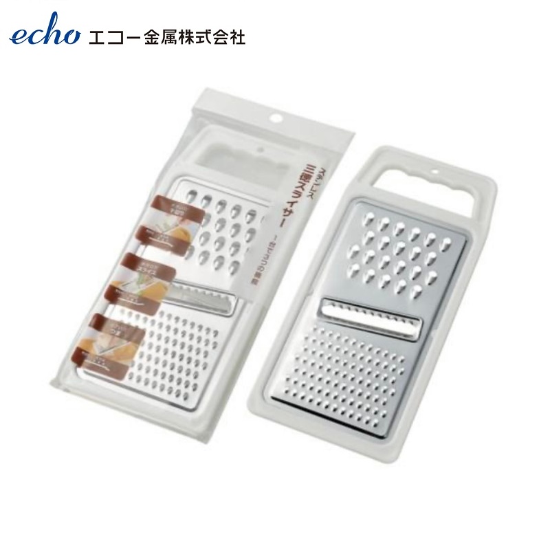 Dụng cụ thái lát, bào sợi cầm tay 3 chức năng Echo ■ Xuất xứ: Nhật Bản | MADE IN JAPAN ■ Kích thước:112×245mm ■ Màu sắc: Màu trắng bạc ■ Chất liệu: