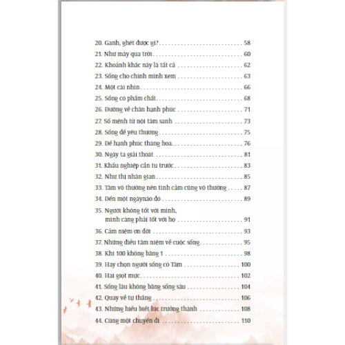 Dòng đời là chuỗi dài những buồn vui, khổ đau, âu lo, phiền muộn, bất an, Tìm được hạnh phúc thật không hề dễ dàng. Nếu bạn biết lấy khổ làm vui, biết biến đau thương thành hạnh phúc, biết hài lòng với những gì mình đang có, biết không ngừng tích lũy hiểu biết, biết yêu thương, sống chân thật, thì tất cả mọi điều sẽ biến thành niềm vui, niềm hạnh phúc bất tận trong trái tim bạn.