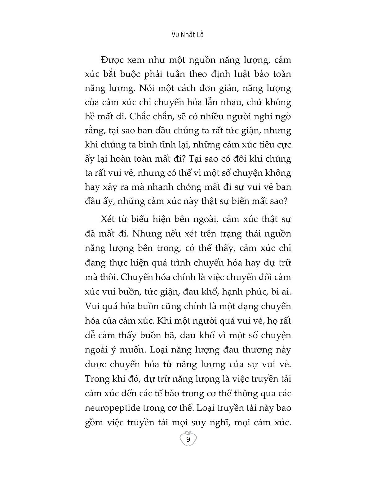 Tác giả Vu Nhất Lỗ Người Dịch Vân Khánh NXB NXB Lao Động Năm XB 2021 Trọng lượng (gr) 320 Kích Thước Bao Bì 20.5 x 13 cm Số trang 312 Hình thức Bìa Mềm Cảm xúc thật sự là gì? Xét từ biểu hiện bên ngoài, cảm xúc bao gồm các trạng thái tình cảm: vui, buồn, tức giận, hạnh phúc, đau khổ,… Nhưng xét từ bản chất của cảm xúc, có thể thấy, nó chính là một dạng năng lượng tâm lý. Cảm xúc tốt sẽ luôn mang đến trí nhớ tế bào tốt. Ngược lại, nếu không kịp thời xử lý những cảm xúc tiêu cực, chúng sẽ nhanh chóng sinh ra một khối lượng lớn chất độc, và truyền đến các cơ quan và bộ phận trong cơ thể. Cảm xúc vốn là một khái niệm trung tính, không có quy ước đúng sai. Vì vậy, khi quan tâm đến cảm xúc của bản thân, chúng ta phải luôn đảm bảo sự lý trí, không được coi cảm xúc như một chuyện xấu, không được dùng đủ mọi cách để kìm nén hay ức chế cảm xúc. Chúng ta nên lý trí, kiềm chế cảm xúc, nhìn nhận cảm xúc một cách thoải mái, nhẹ nhàng. Con người cần kiểm soát tốt cảm xúc của chính mình. Kiểm soát cảm xúc không đơn giản chỉ là không khóc, không cười, không tức giận, cũng không phải là kìm nén, cầu toàn, trên hết, kiểm soát cảm xúc là một dạng EQ. Tuy nhiên, muốn sở hữu EQ cao không phải là chuyện dễ dàng.