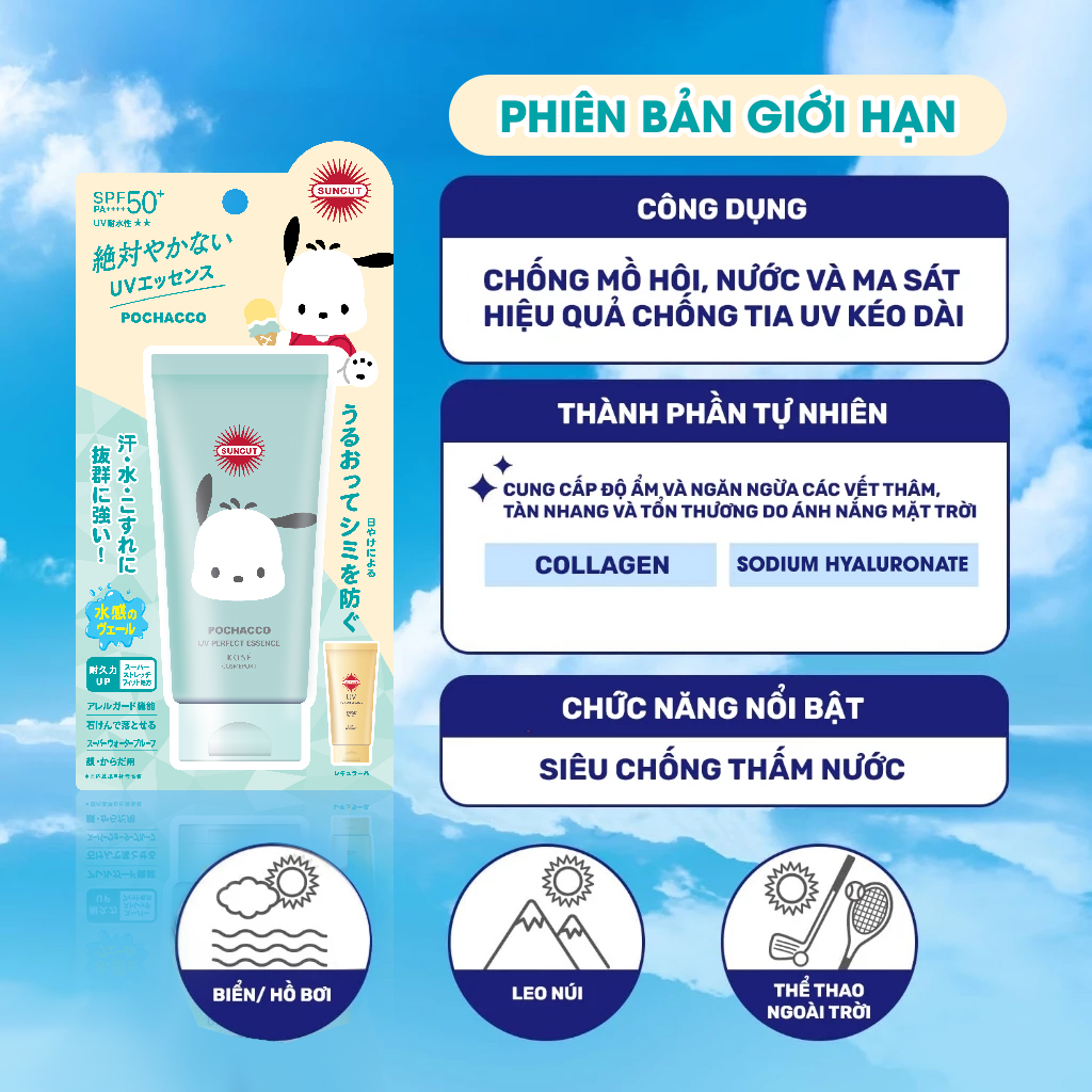 ESSENCE CHỐNG NẮNG - SIÊU CHỐNG THẤM NƯỚC 80G PHIÊN BẢN GIỚI HẠN – POCHACCO SUNCUT UV PERFECT ESSENCE SUPER WATER PROOF SPF50+ PA++++ Số Lô: In trên sản phẩm Khối Lượng Tịnh: