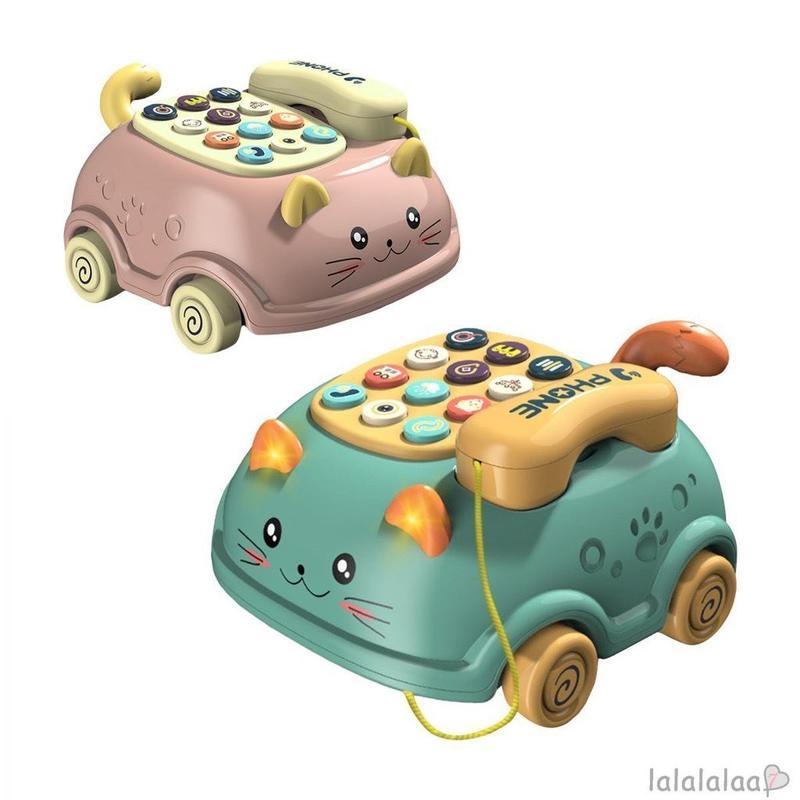 Đồ Chơi Điện Thoại Bàn 2 In 1 Hình Ô Tô Con Mèo Phát Nhạc, Đèn, Có Dây Kéo Siêu Ngộ Nghĩnh
