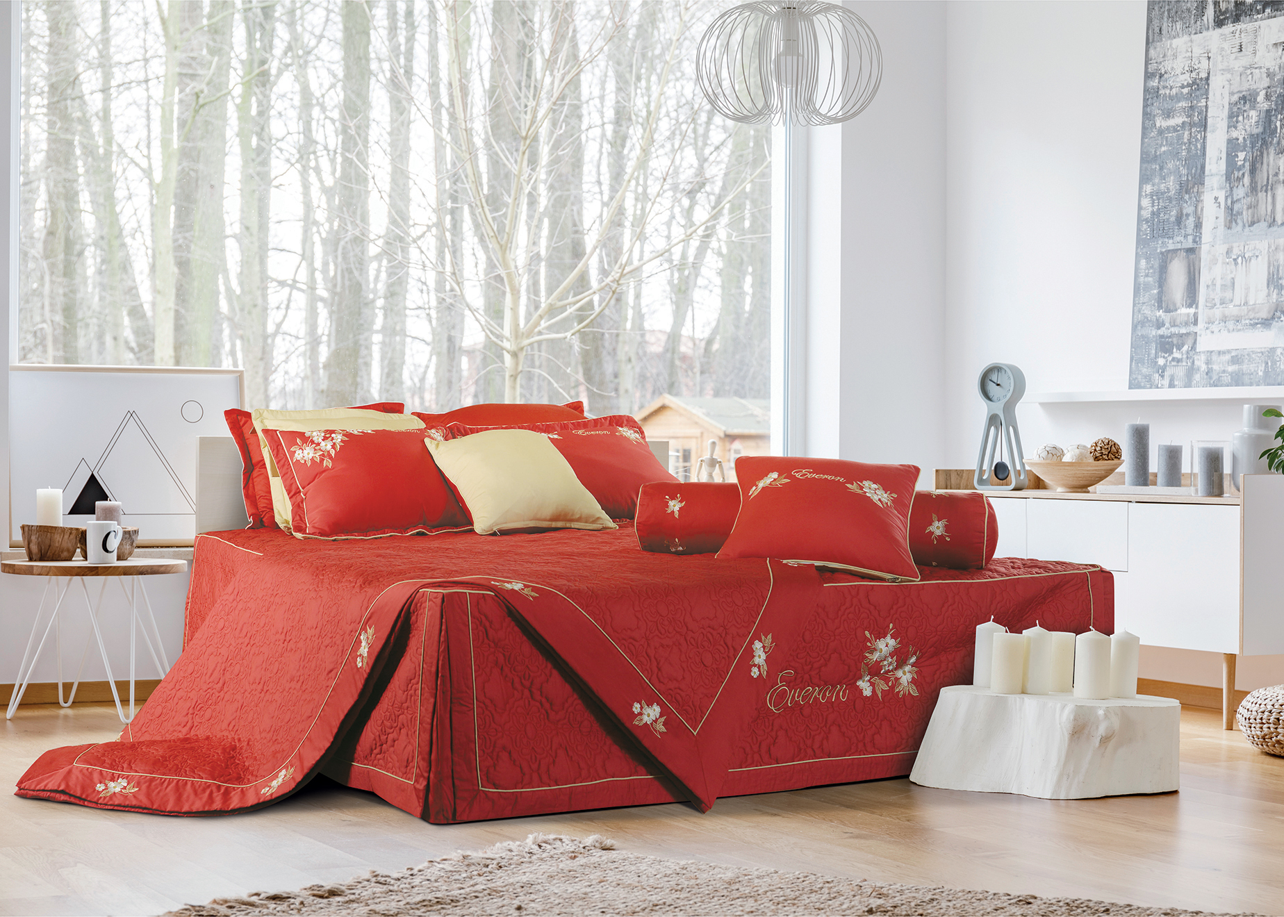 Mã sản phẩm: ESM19014 thuộc bộ sưu tập 2019 Chất liệu: Modal Xuất xứ : Việt Nam Mô tả: Lấy ý tưởng từ những cành hoa đào nở rộ vào mùa xuân, được thêu trên nền vải đỏ truyền thống, ,mùa xuân, mùa của sự đoàn viên vì vậy bộ chăn ga này sẽ giúp cho phòng ngủ của bạn cảm giác ấm cùng và gần gũi. ga chun chần 200.220 + 2 vỏ gối nằm Everon ESM 19014